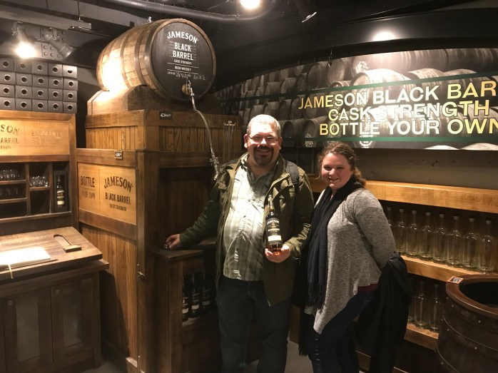 The other highlight, bottling our own bottle of Jameson Whiskey. At the Bow Street Distillery, they have a special whiskey that can only be purchased at that location and when you purchase it, you bottle it, write out the label and add your label’s number to the official book. That’s bit on the pricier side, but it was something we couldn’t pass up!
