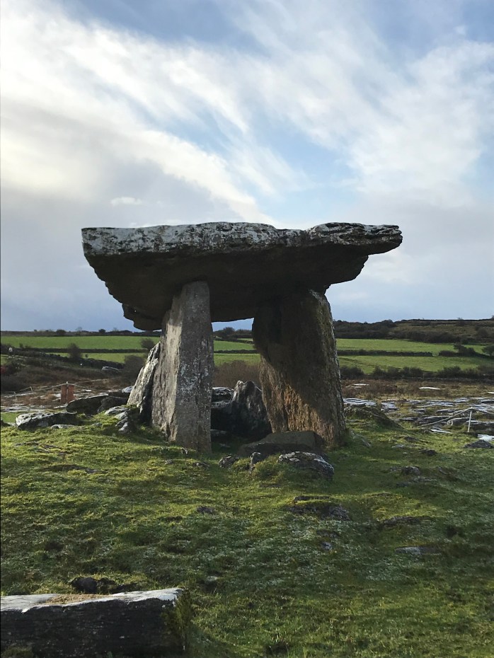 From Dunguaire Castle we continued into Burren National Park for a stop at Poulnabrone Dolmen. This megalithic monument is the oldest one in Ireland. It is classified as a Portal Tomb and researchers believe is was used for rituals well into the Bronze Age. Poulnabrone Dolmen is in an isolated area and requires a bit of walking to get to, but the view of the monument and surrounding area, is worth the walk.