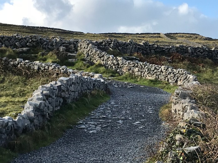 We choose a guide heading toward the Ring of Aran. Our van of six was cozy but our guide was great. He pointed out spots along the way to our destinations. Our main stop was the base of the walk to Dún Aonghasa. Originally constructed around 1100 B.C., Dún Aonghasa is the largest of the prehistoric forts on the Aran Islands. We were dropped off at the visitor’s center down below and given a couple hours to explore. The cost to walk to the fort is five Euro and well worth it. The walk is a gentle uphill climb that takes you past the famous stone walls of the Aran Islands up to the fort, perched on the top of a cliff. The last hundred steps are on a bit of rocky terrain, so be sure to wear sturdy shoes for this walk.